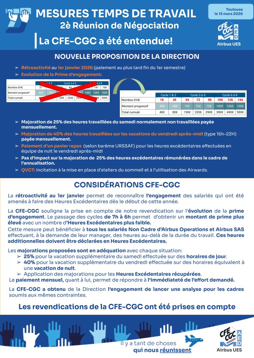 La CFE-CGC souligne la prise en compte de notre revendication sur l’évolution de la prime d’engagement.